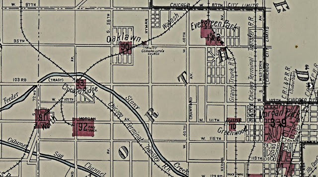 By 1909, the year of incorporation, the village's three hundred citizens were scattered over 1.5 square miles [on a map it looked like a rectangle]. Some of these citizens were Dutch truck farmers who had arrived around the turn of the century. The term incorporation meant that gas lines could be installed, unruly visitors picnicking in the wooded areas along the creek and lake could be policed, and the city of Chicago would be less likely to annex the community.' [In 1889 Chicago annexed four townships that doubled the size and population of their city and was looking for more].'from the Library of Congress